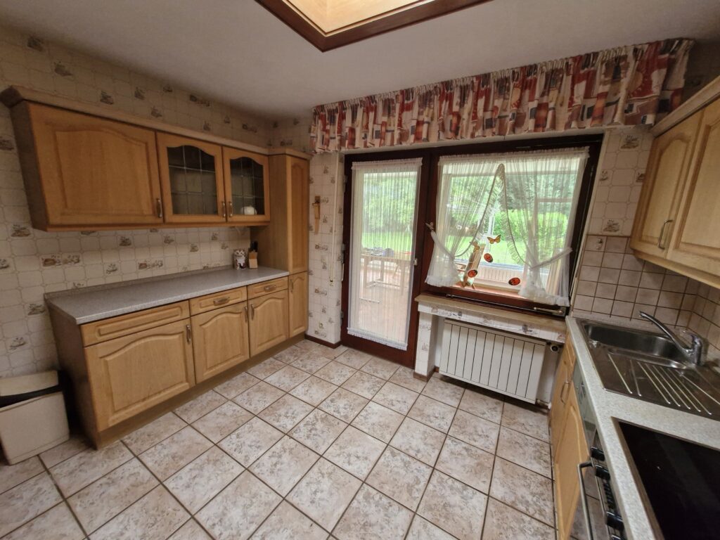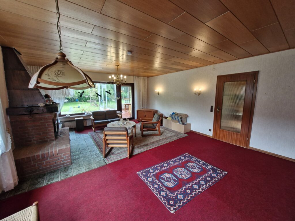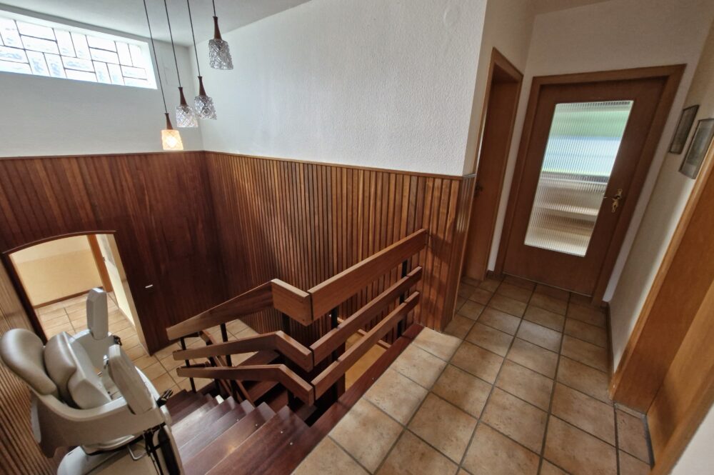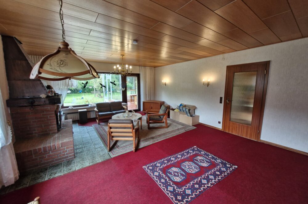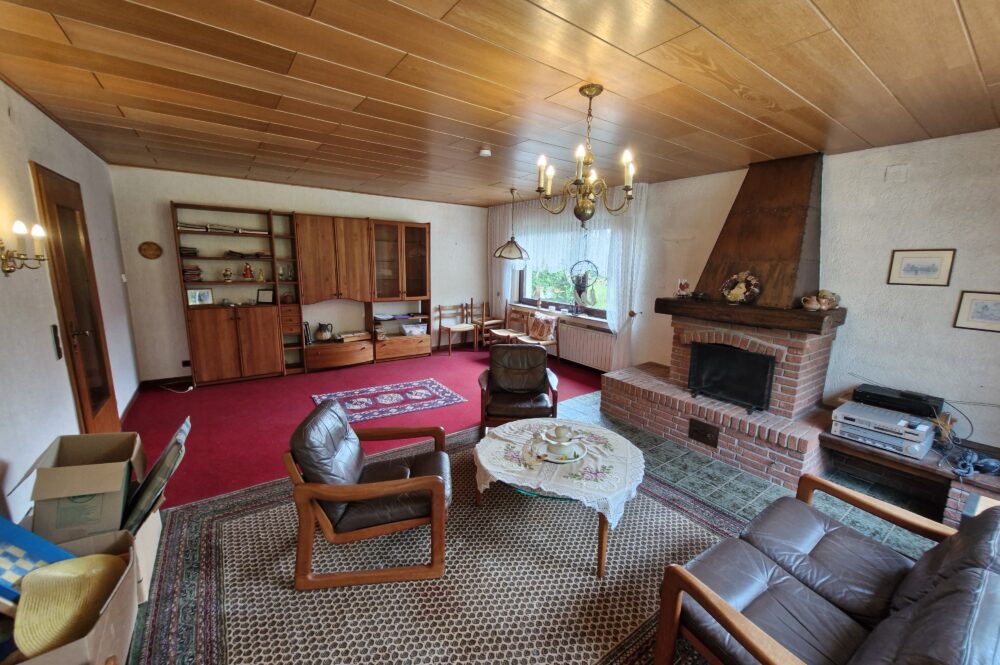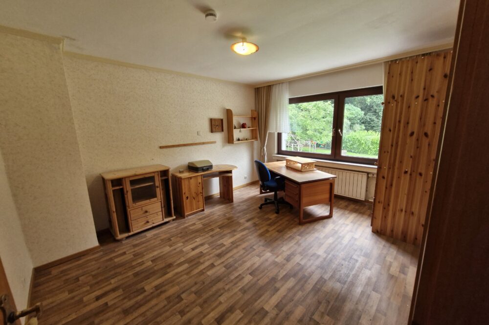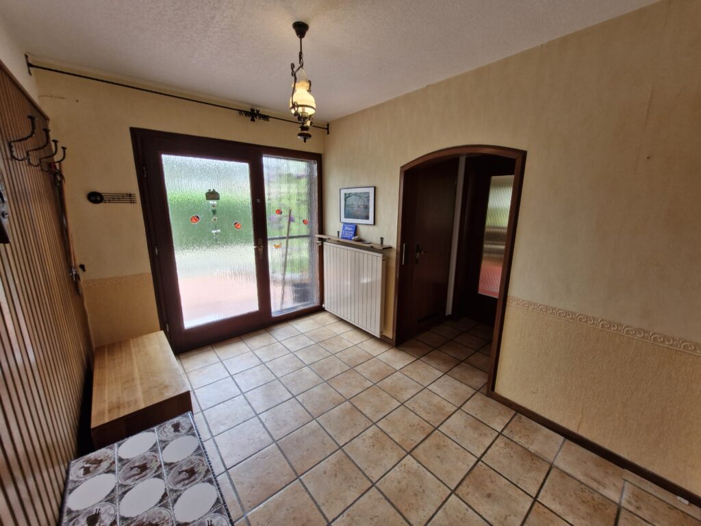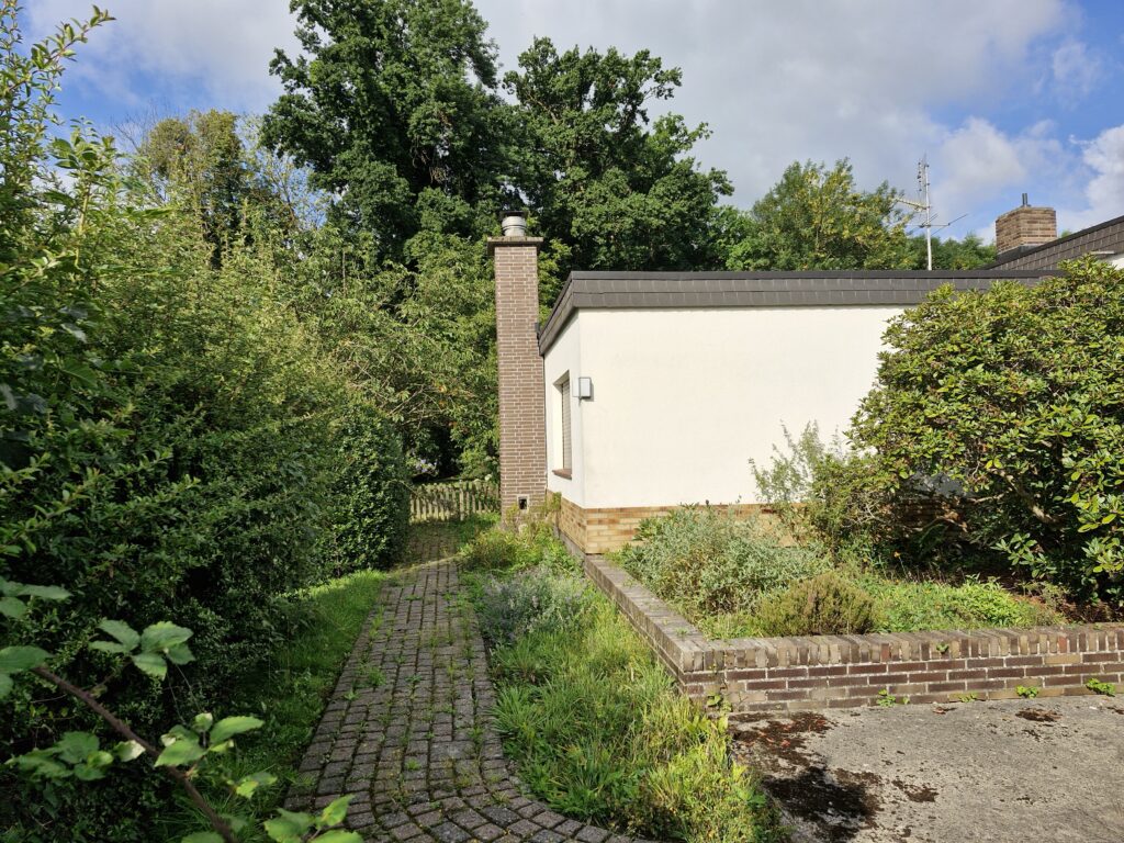 Das Einfamilienhaus wurde im Jahre 1967 in Massivbauweise fertiggestellt. Die Wohnfläche von rund 138 m² verteilt sich auf die Diele, das Gäste-WC, das Wohnzimmer, den beheizten Wintergarten, welcher als Esszimmer dient, und die Küche im Erdgeschoss. Im Obergeschoss befinden sich drei weitere Zimmer, sowie das Tageslichtbadezimmer mit Dusche und Badewanne.