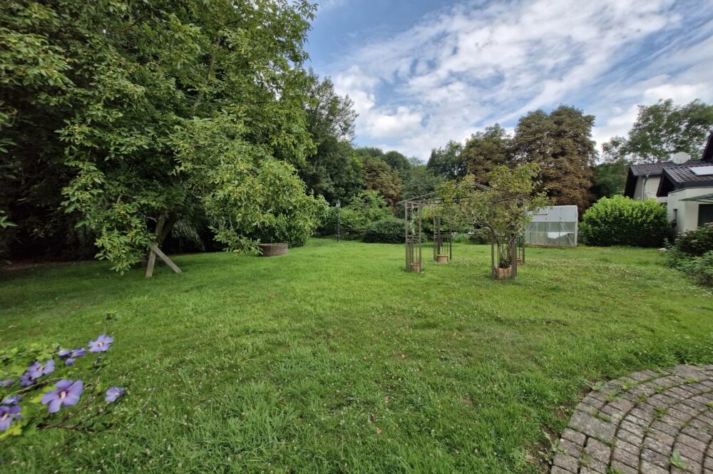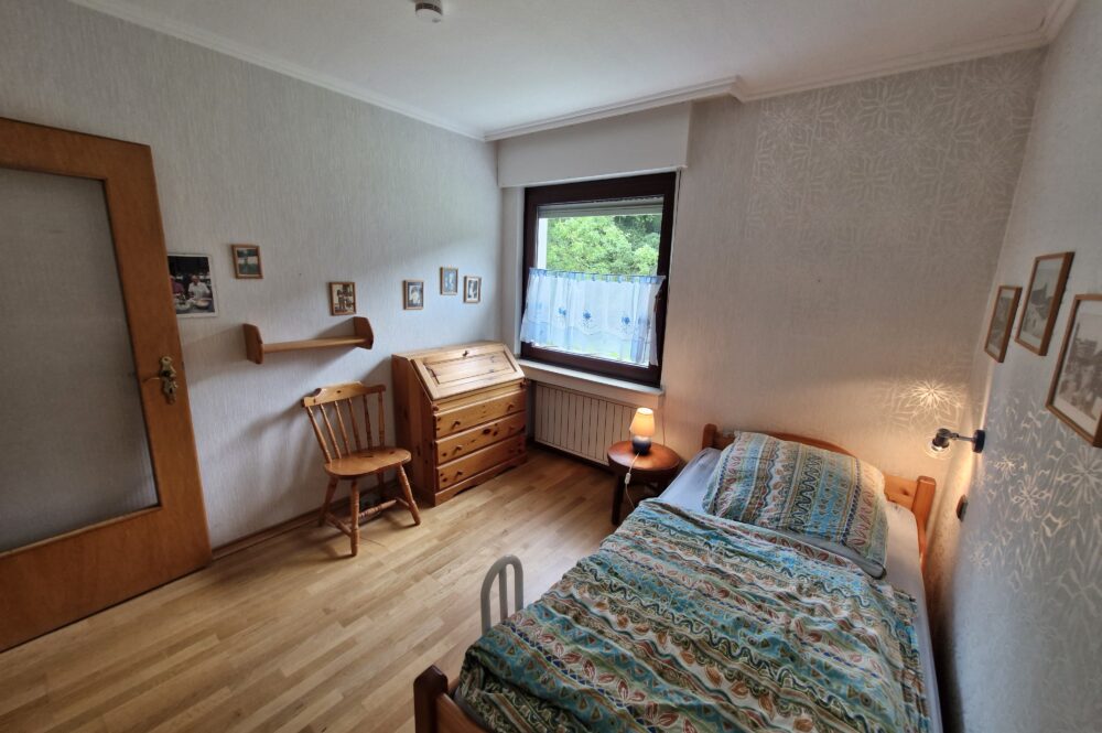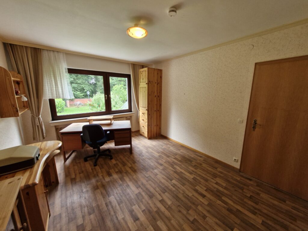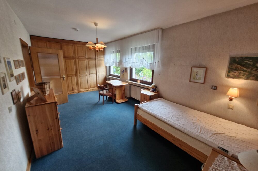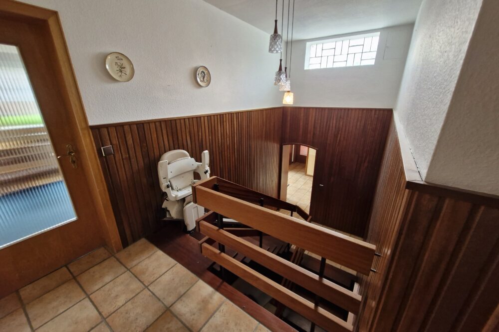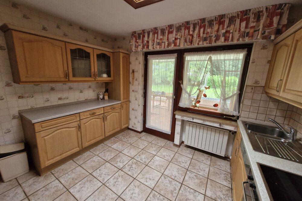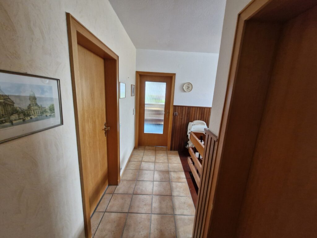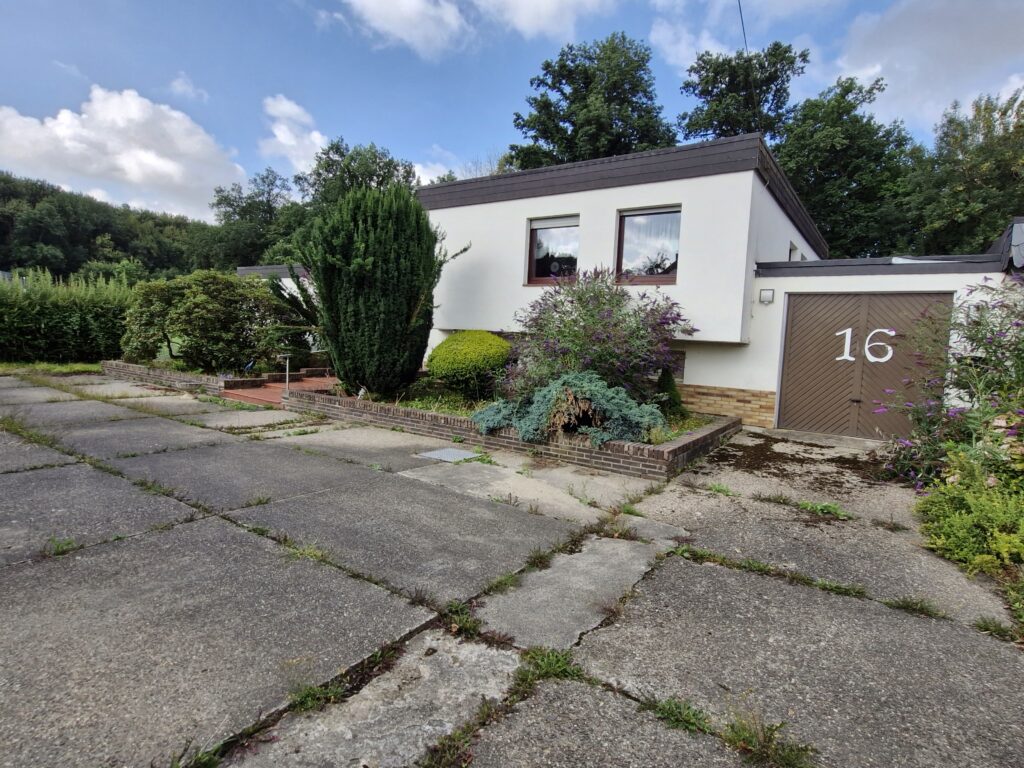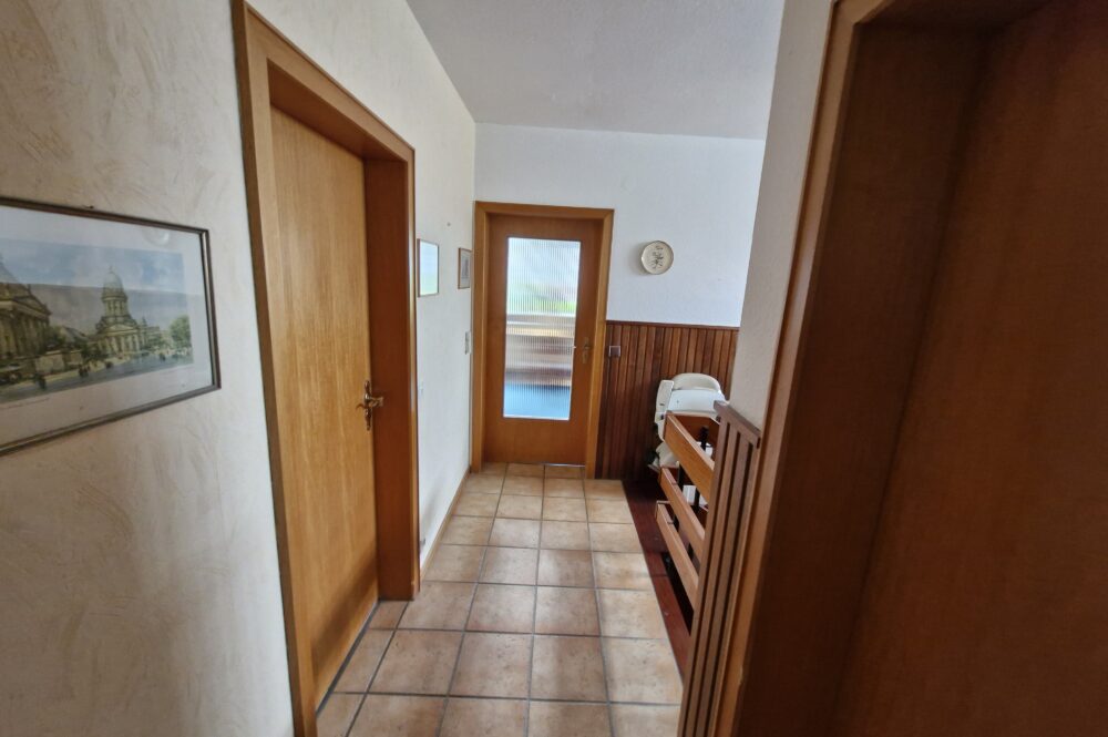 Das Einfamilienhaus wurde im Jahre 1967 in Massivbauweise fertiggestellt. Die Wohnfläche von rund 138 m² verteilt sich auf die Diele, das Gäste-WC, das Wohnzimmer, den beheizten Wintergarten, welcher als Esszimmer dient, und die Küche im Erdgeschoss. Im Obergeschoss befinden sich drei weitere Zimmer, sowie das Tageslichtbadezimmer mit Dusche und Badewanne.