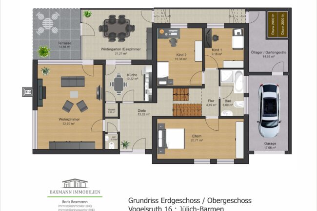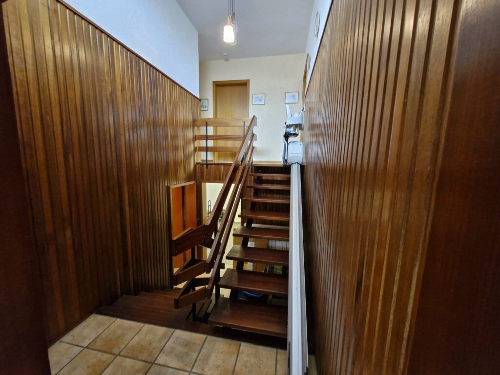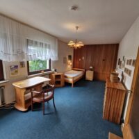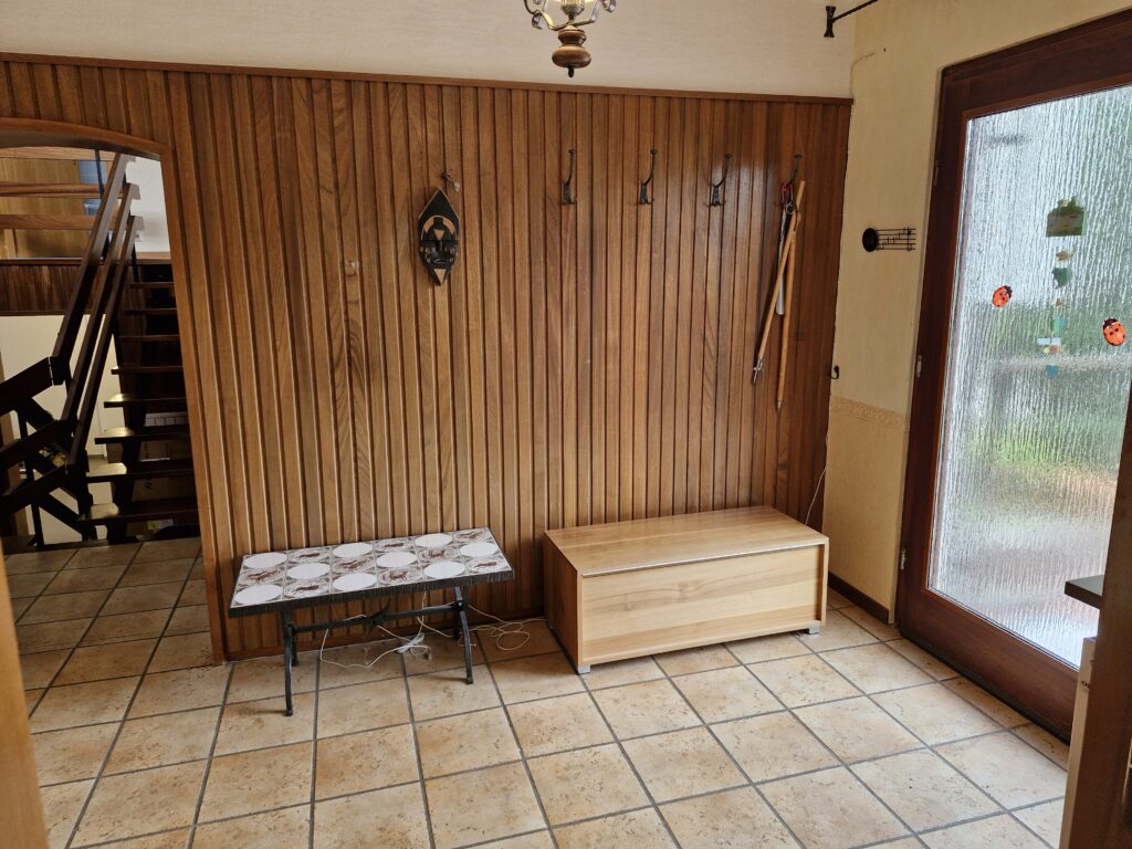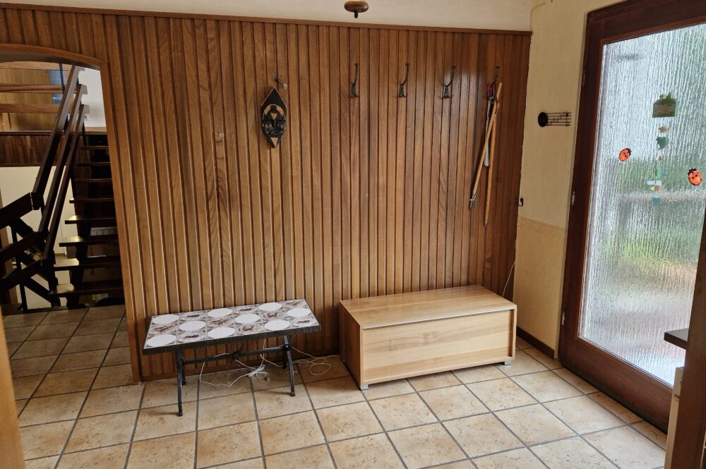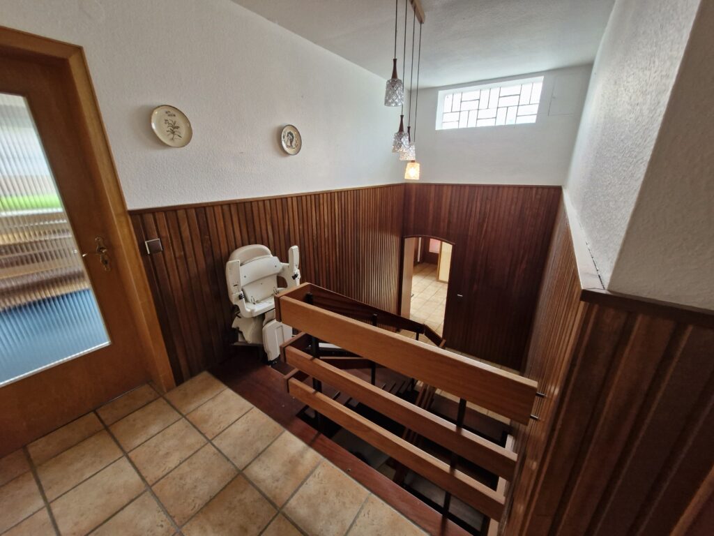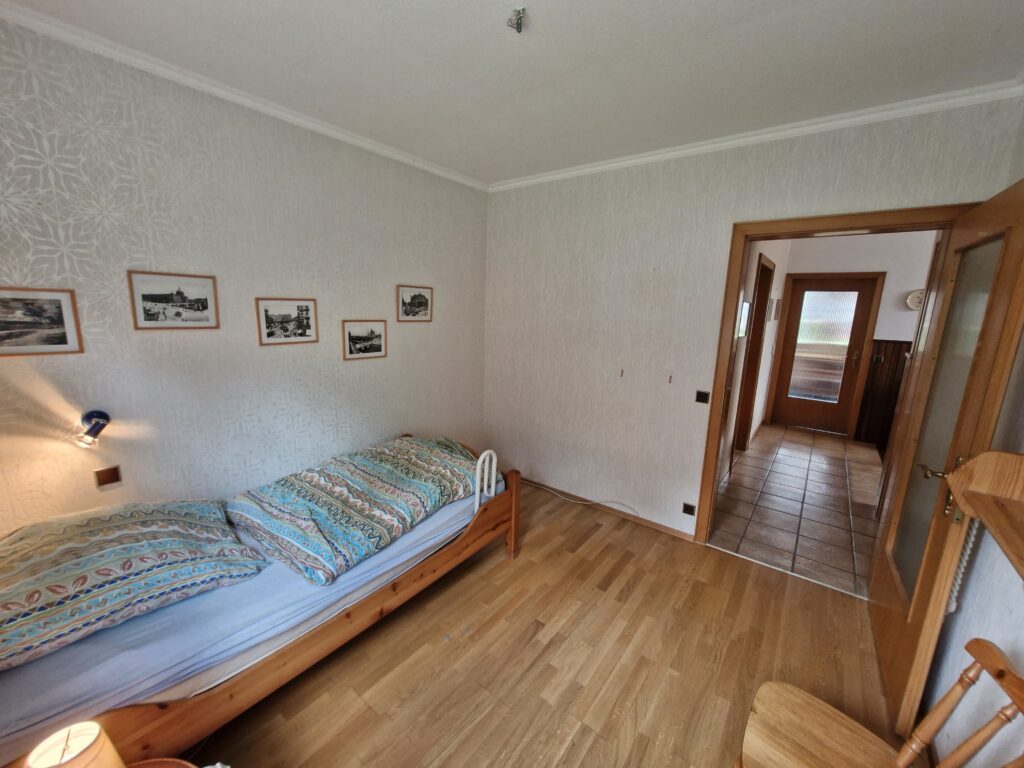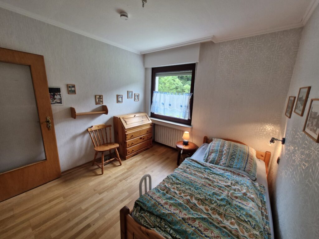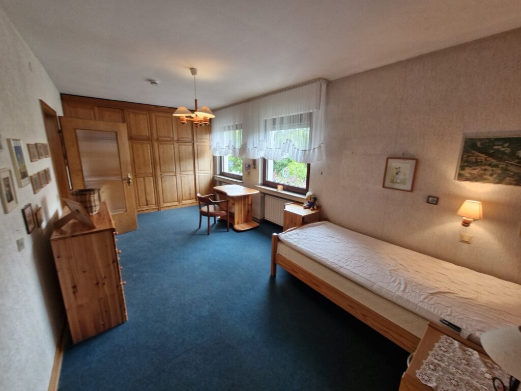 Das Einfamilienhaus wurde im Jahre 1967 in Massivbauweise fertiggestellt. Die Wohnfläche von rund 138 m² verteilt sich auf die Diele, das Gäste-WC, das Wohnzimmer, den beheizten Wintergarten, welcher als Esszimmer dient, und die Küche im Erdgeschoss. Im Obergeschoss befinden sich drei weitere Zimmer, sowie das Tageslichtbadezimmer mit Dusche und Badewanne.