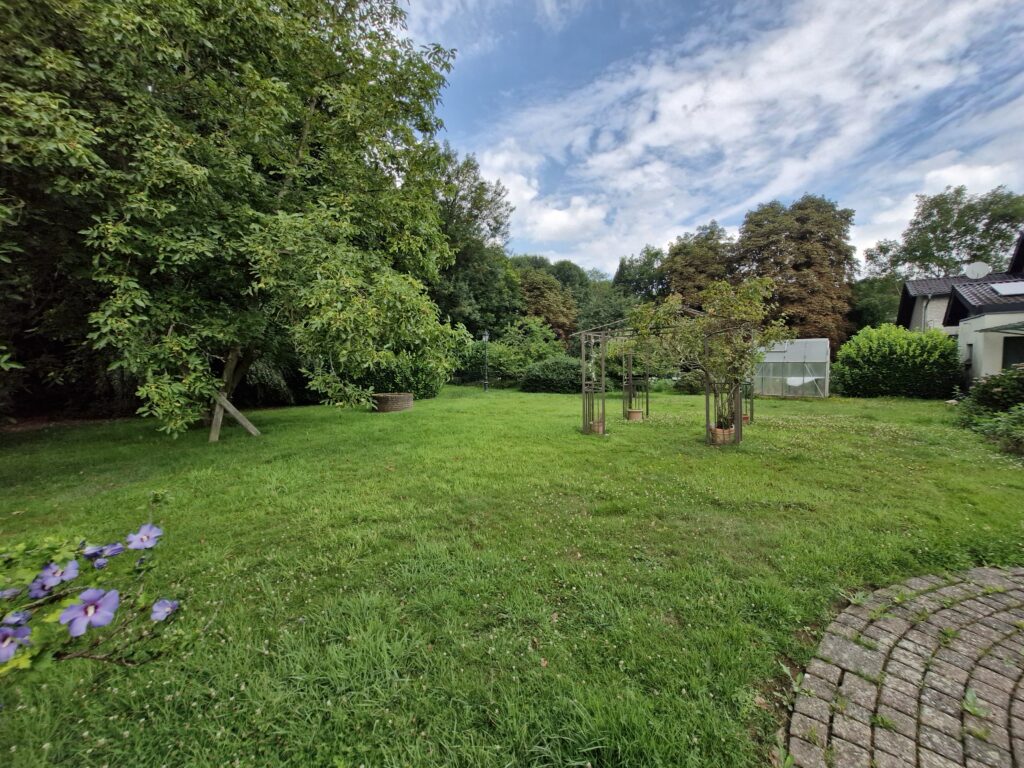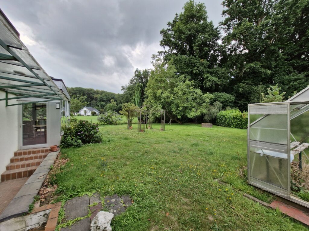 Über eine eigene Zufahrt gelangen Sie zu Ihrem gepflegten, freistehenden Einfamilienhaus mit einer Garage und einem großzügigen, parkähnlichen Garten inmitten der Natur!