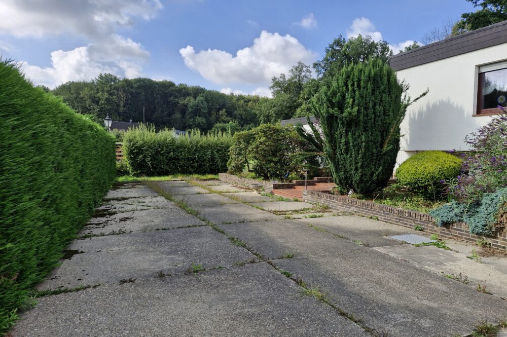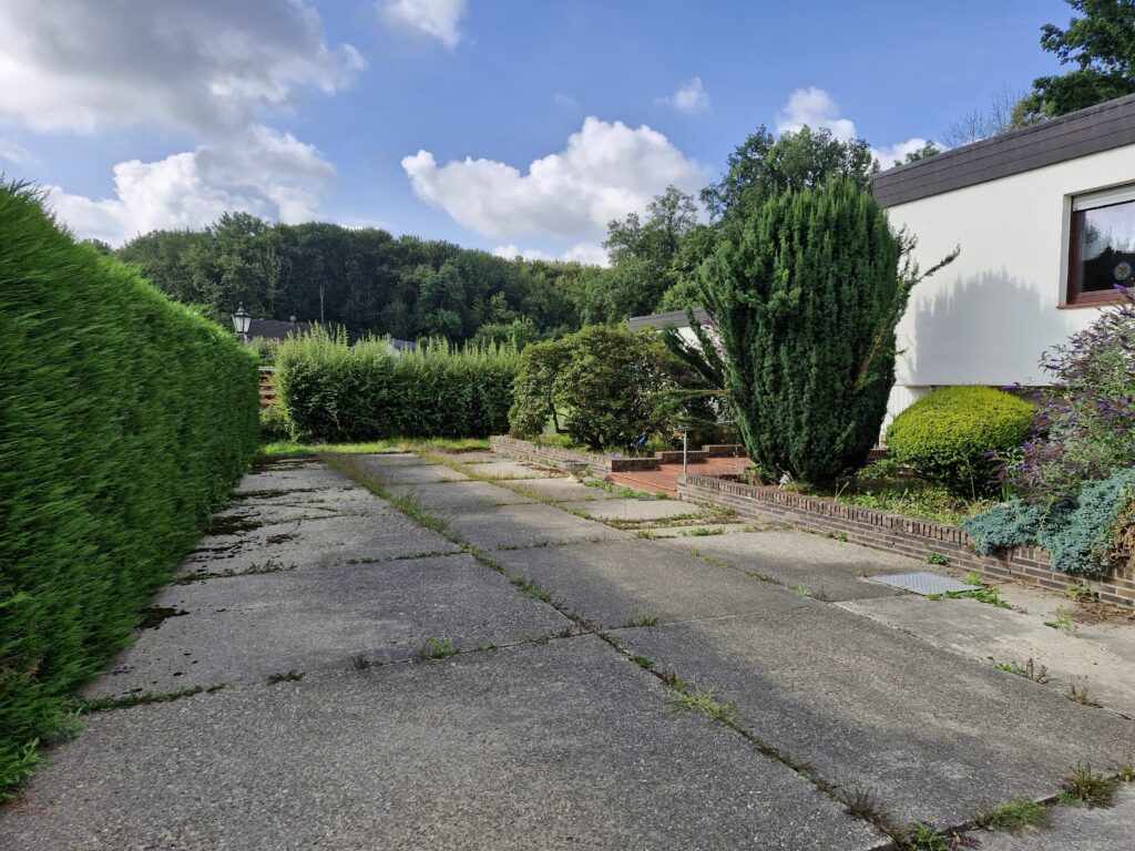 Vor dem Haus ist genügend Platz, um weitere Fahrzeuge zu parken.
